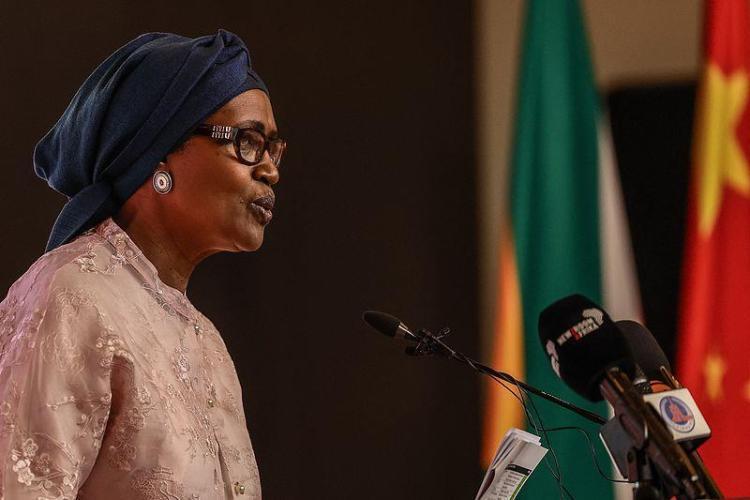 △图为11月20日,联合国副秘书长、联合国艾滋病规划署执行主任温妮·拜安伊玛在南非艾滋病预防服务拓展项目启动仪式上发表讲话。