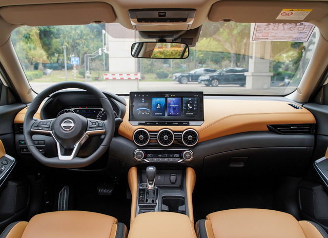 日产轩逸在内饰方面,跟外观一样,比较简约,前卫,中控台采用V字形布局,方向盘采用平底式设计,内饰由黑色和浅棕色组成,中控屏幕的尺寸为12.3英寸,车机系统采用Nissan Connect超智联,辅助驾驶系统为ProPILOT。